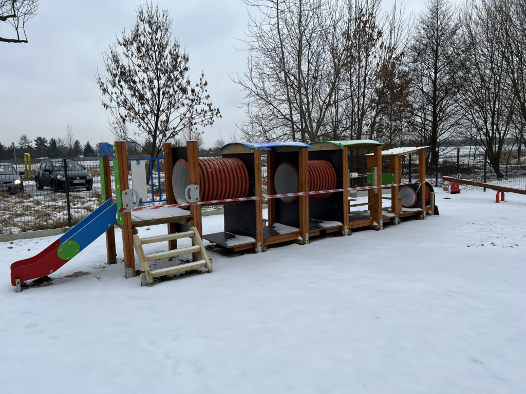 Za nami wyrównanie terenu i wysypanie nawierzchni placu zabaw. Zostały zainstalowane sprzęty z Żernicy oraz zamontowano lokomotywę dostosowaną do potrzeb dzieci przedszkolnych. Nowy plac zabaw zamówiliśmy w listopadzie, dotarł do nas kilka dni temu i w przyszłym tygodniu (po zawiązaniu betonu) dzieci będą mogły z niego korzystać.