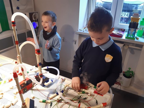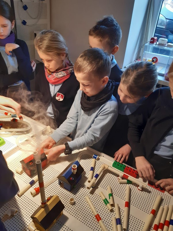 | Ostatniego dnia przed feriami drugoklasiści byli na wycieczce w Pracowni Zajęć Kreatywnych H20 w Siemianowicach Śląskich. Czekało tam na nich wiele stanowisk, przy których każdy mógł stworzyć własną konstrukcję. Wszyscy byli bardzo zaangażowani i z ciekawością obserwowali, co w danym momencie udało im się uruchomić. |