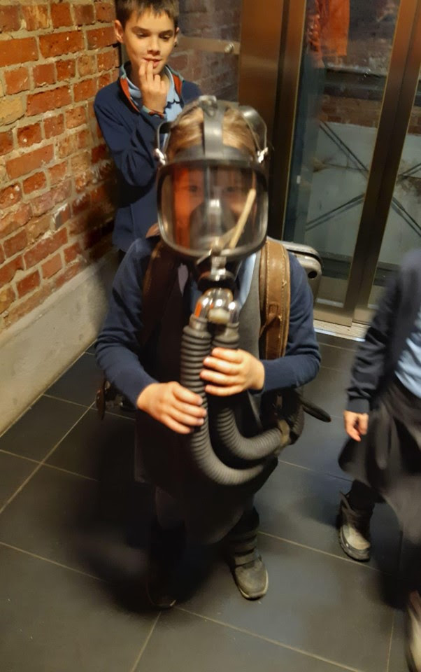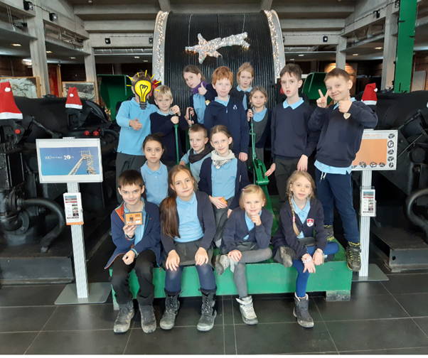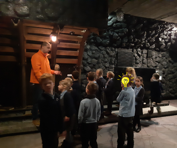| Uczniowie mieli też okazję zwiedzić kopalnię, gdzie mogli poczuć, ile ważył plecak, który mieli na sobie górnicy. Na koniec w sali wyglądającej jak prawdziwe kino obejrzeli film opowiadający o postaci świętej Barbary. |