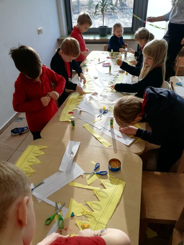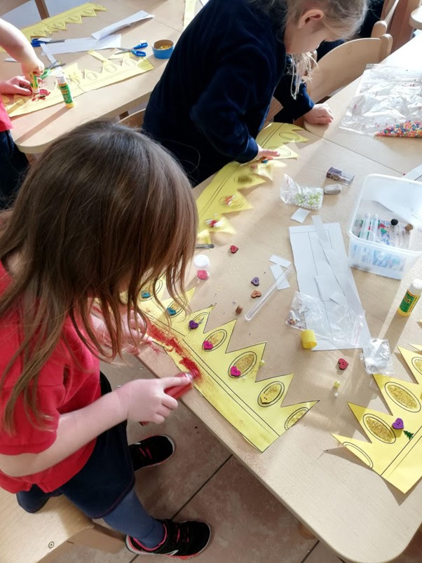 | Dzieci wykonały też wyjątkowe korony oraz wytrwale rozwijały pracowitość i odpowiedzialność poprzez dbanie o czystość sali 🙂 |